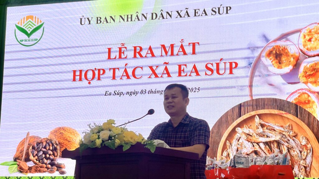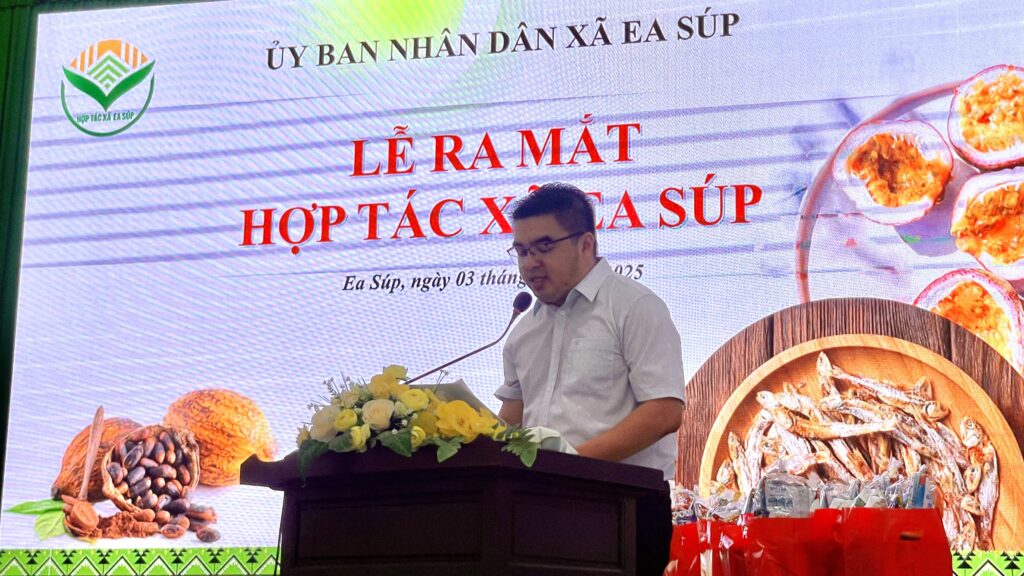 Ông Đỗ Xuân Dũng – Bí thư Đảng ủy, Chủ tịch HĐND xã Ea Súp phát biểu, nhấn mạnh vai trò của HTX trong phát triển kinh tế tập thể.