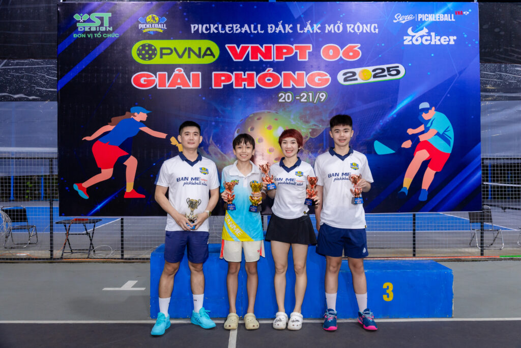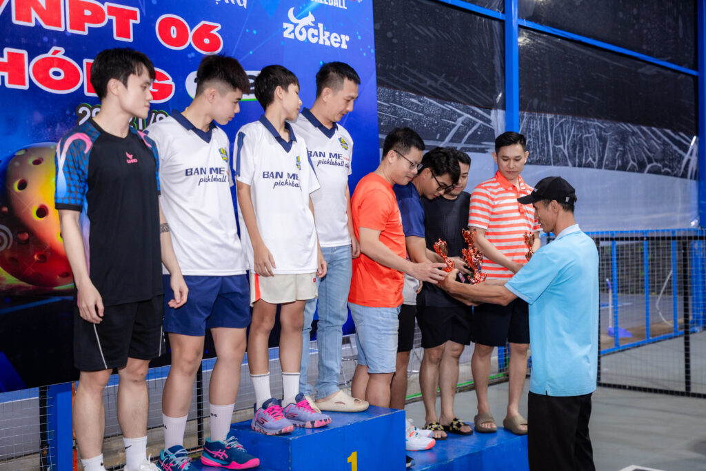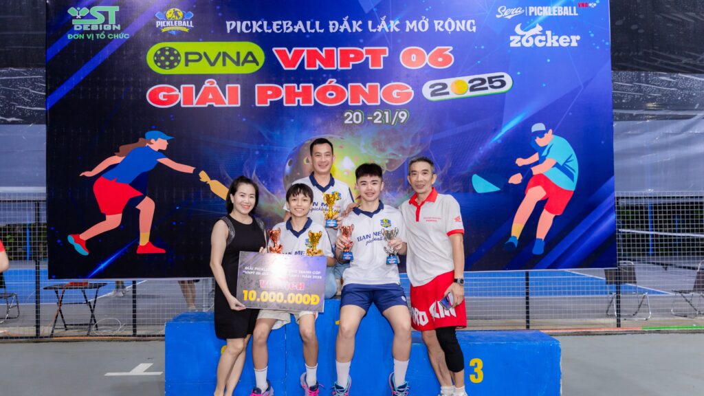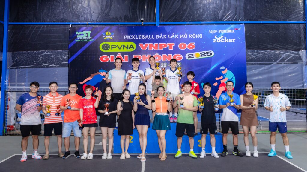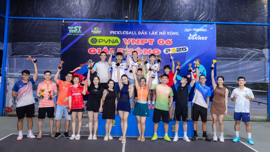 Đặc biệt, Ban tổ chức Giải Pickleball Đắk Lắk mở rộng – Tranh Cúp “VNPT 06 Giải Phóng” trân trọng cảm ơn CLB Pickleball 06GP đã hỗ trợ công tác tổ chức, tạo điều kiện tập luyện và thi đấu cho các VĐV, cũng như nhà tài trợ chính – thương hiệu bóng Zocker cùng các nhà tài trợ đã đồng hành, cung cấp trang thiết bị thi đấu chất lượng, giúp giải diễn ra suôn sẻ và chuyên nghiệp.