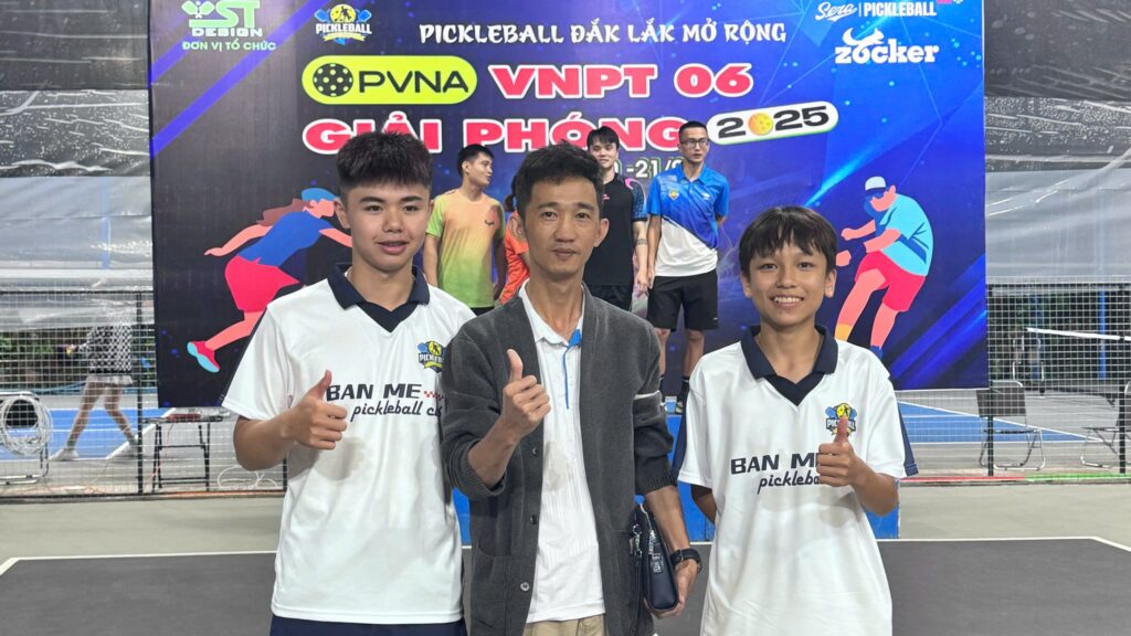 Không khí sôi động tại Giải Pickleball Đắk Lắk mở rộng – Tranh Cúp “VNPT 06 Giải Phóng” lần thứ nhất năm 2025 càng thêm nóng khi hai học sinh lớp 11 là Ngô Kỳ Thống (Trường THPT Đắk Mil, Lâm Đồng – Đắk Nông cũ) và Trần Đỗ Đăng Khoa (Trường THPT Chu Văn An, TP. Buôn Ma Thuột) liên tục tạo ra những pha bóng đẹp mắt, nhận được tràng pháo tay tán thưởng từ khán giả. Với lối chơi thông minh, tự tin và kỹ thuật ổn định, cả hai đã trở thành tâm điểm của giải đấu ngay từ những vòng đầu tiên.